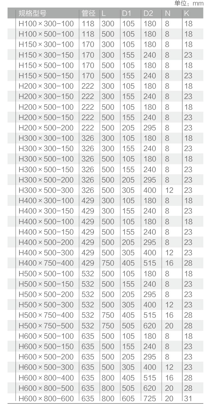 球墨鑄鐵管全密封開(kāi)孔分流器主要尺寸