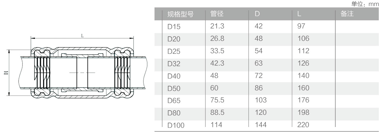 鍍鋅管直節(jié)修補(bǔ)器主要尺寸