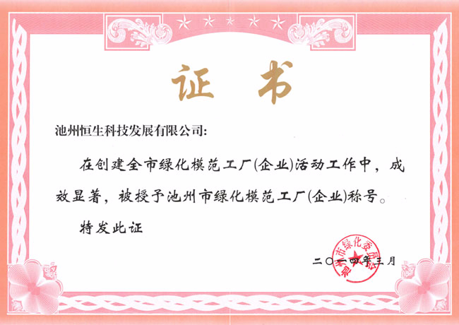 池州綠化模范工廠(企業(yè))稱號(hào)