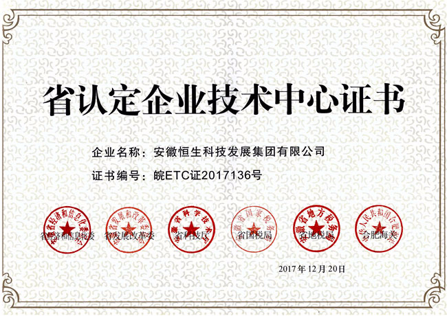 省認(rèn)定企業(yè)技術(shù)中心證書