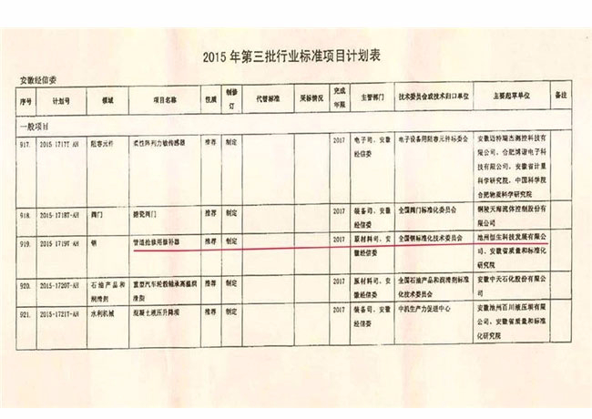 我公司起草管道修補器行業(yè)標(biāo)準(zhǔn)證明